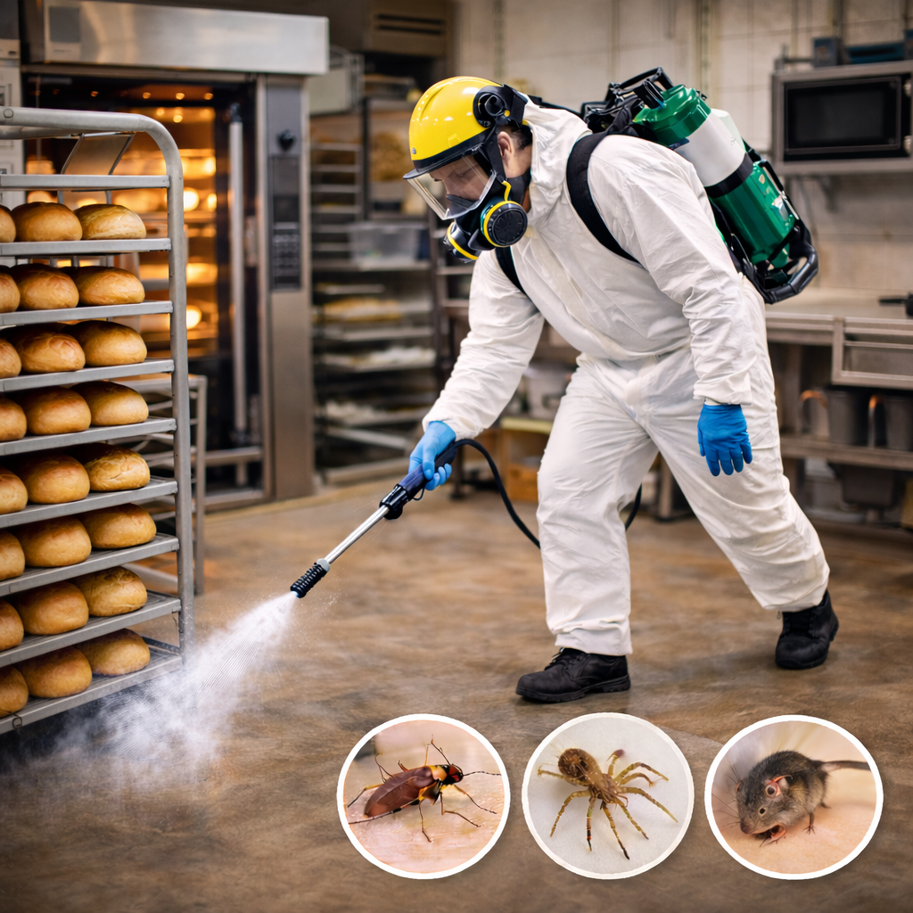 Elbistan İlaçlama olarak, ekmek fırınlarında görülen zararlı sorunlarına karşı etkili, güvenli ve kontrollü çözümler sunuyoruz. Deneyimli ekibimiz, işletmenin çalışma düzenine ve hijyen hassasiyetine uygun yöntemler belirleyerek profesyonel ekipmanlarla dikkatli müdahale sağlar. Uygulamalarımızda gıda güvenliğini, hijyen standartlarını ve üretim alanlarının korunmasını ön planda tutarak daha temiz, güvenli ve sağlıklı üretim ortamları oluşturmayı hedefliyoruz.