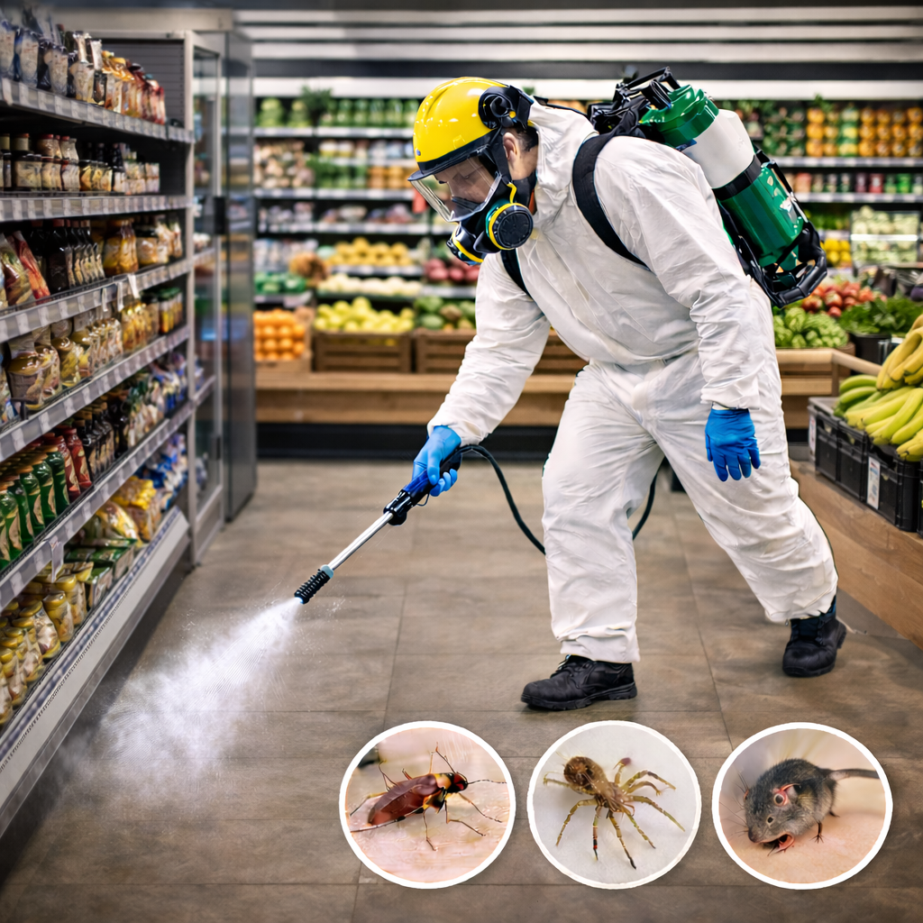 Elbistan İlaçlama olarak, marketlerde görülen zararlı sorunlarına karşı etkili, güvenli ve kontrollü çözümler sunuyoruz. Deneyimli ekibimiz, marketin yapısına ve kullanım yoğunluğuna uygun ilaçlama yöntemleri belirleyerek profesyonel ekipmanlarla dikkatli ve hızlı müdahale sağlar. Uygulamalarımızda hijyen standartlarını, ürün güvenliğini ve müşteri sağlığını ön planda tutarak daha temiz, güvenli ve sağlıklı satış alanları oluşturmayı hedefliyoruz.