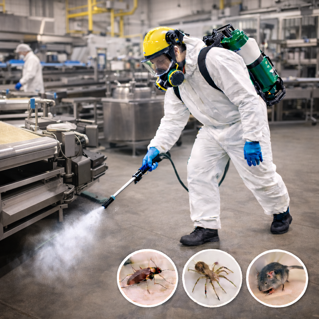 Elbistan İlaçlama olarak, üretim tesislerinde görülen zararlı sorunlarına karşı etkili, güvenli ve kontrollü çözümler sunuyoruz. Deneyimli ekibimiz, tesisin yapısına, üretim sürecine ve hijyen hassasiyetine uygun yöntemler belirleyerek profesyonel ekipmanlarla dikkatli ve hızlı müdahale sağlar. Uygulamalarımızda hijyen standartlarını, üretim güvenliğini ve çalışma alanlarının korunmasını ön planda tutarak daha temiz, güvenli ve sağlıklı üretim ortamları oluşturmayı hedefliyoruz.